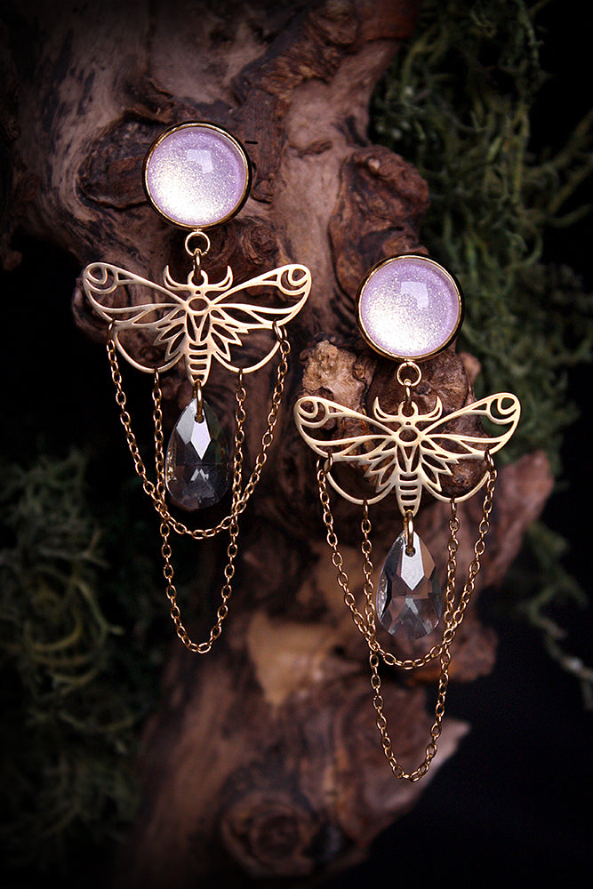 Die Fassungen der Plugs werden aus Edelstahl mit Glassteinen gefertigt und auf der Rückseite mit Acrylplugs versehen, die mit einem O-Ring geschlossen werden. Die Länge der Acrylplugs beträgt ca. 12 mm.