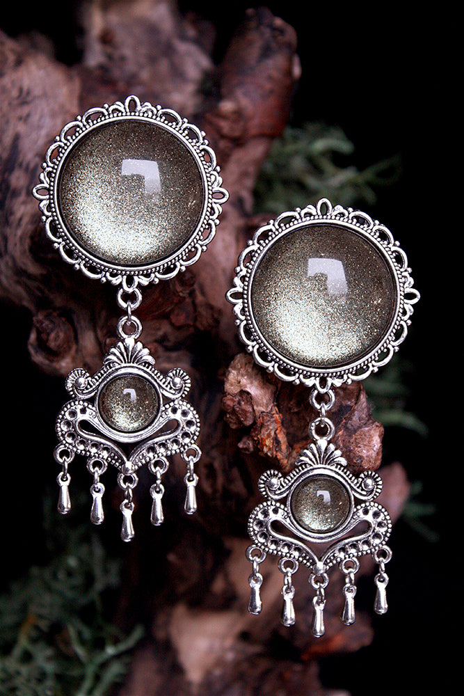 Die Plugs werden aus einer Metalllegierung mit Glassteinen gefertigt und auf der Rückseite mit Acrylplugs versehen, die mit einem O-Ring geschlossen werden. Die Länge der Acrylplugs beträgt ca. 12 mm.